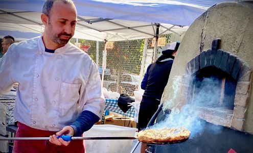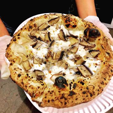 Our pizzas are made on site,and cook them in our mobile wood fired pizza oven.